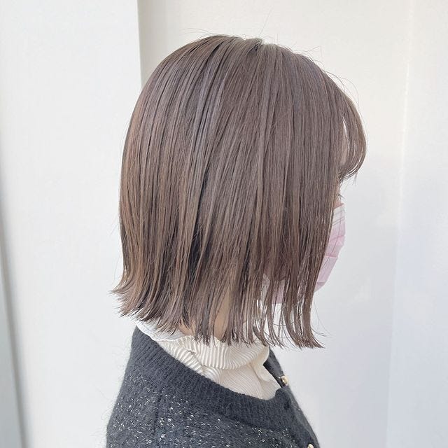 パーマをかけなくてもできるストレートボブで、トリートメントをつけてから乾かし、毛先を整えたりバームを付けたりするだけでできます。