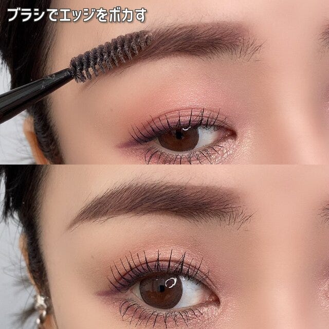 ペンシルで描いたあとは、スクリューブラシでエッジをボカすのも忘れずに。そうすることで、描きました感のないナチュラルな眉に近づきます。