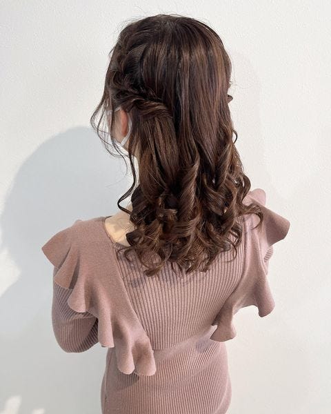 ふんわりとしたゆるめの巻き髪と立体感のあるおしゃれなハーフアップは、大人可愛い中に清楚さを感じさせる髪型が作れますよ。