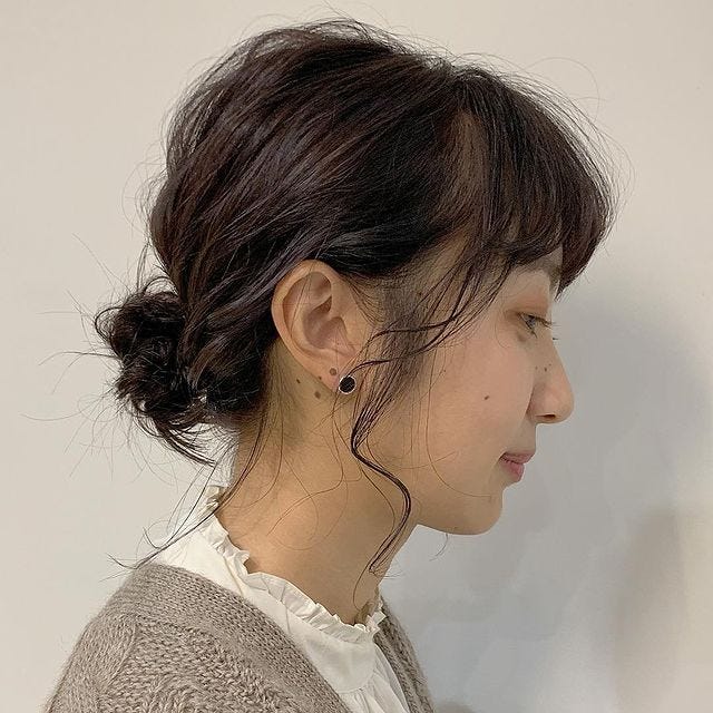 少し長めのボブなら低めの位置にお団子を作る、大人っぽいアレンジの髪型はいかがでしょうか?