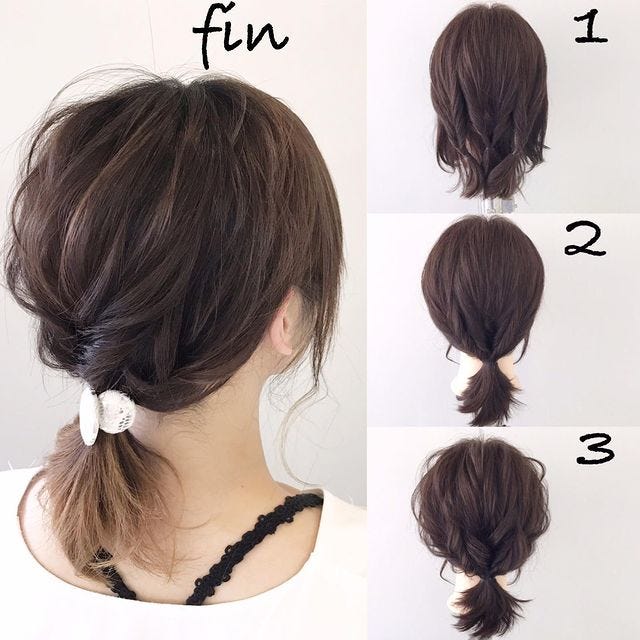 やっと肩にかかる長さのミディアムなら、トップを3つに分けてくるりんぱでボリュームを出す方法がおすすめです。