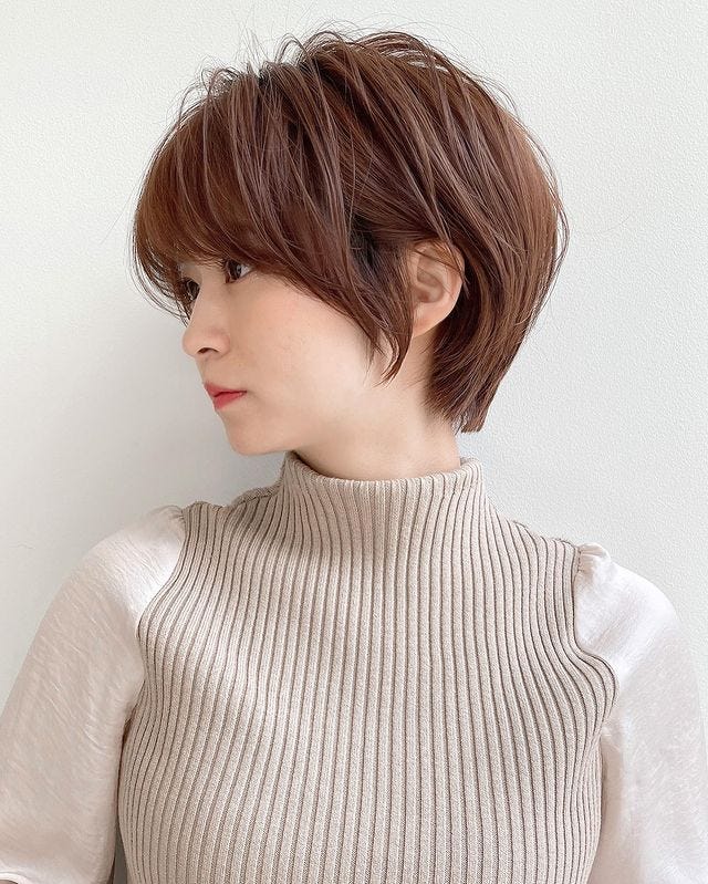そんな時に毛量やボリュームを気にせずにスタイリングができるコンパクトショートはおすすめです。前髪を長く残してバランスを取りましょう。