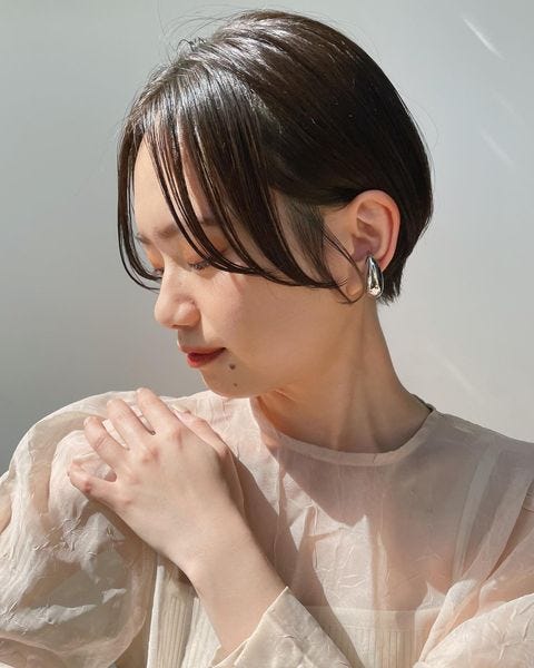 夏らしいショートヘアの中でも、シアーな質感のコンパクトショートは、よりトレンド感が高い髪型です。