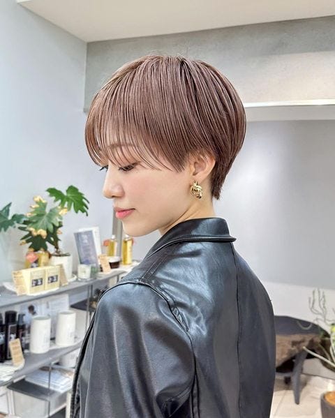 こちらは、夏にぴったりのハイトーンカラーのマッシュショート。トレンドの柔らかな暖色系や、きれいめの寒色系なども似合うでしょう。