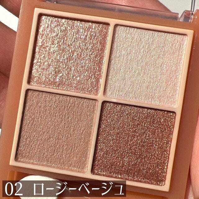 まるで韓国コスメのような配色が可愛い♡抜群の肌なじみの良さを誇る4色パレット。デパコス顔負けのなめらかな粉質で、色持ちもバッチリ。ラメのギラギラ感がなく、ナチュラルに盛れるので、シーン問わず使えますよ。
