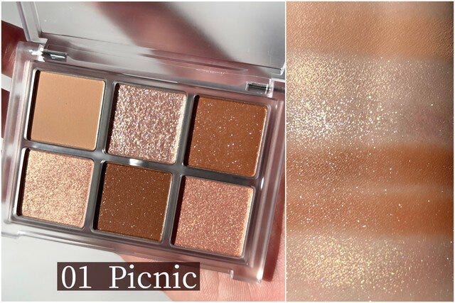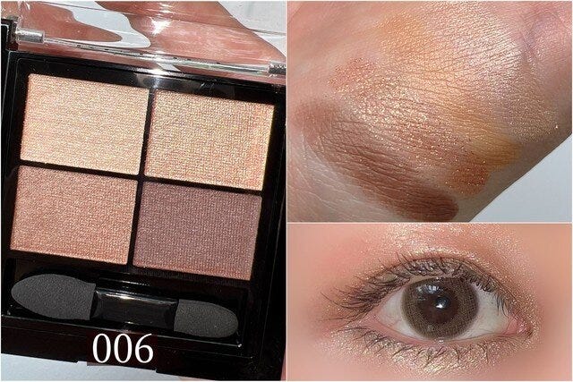 グリッター・シマー・マット3種類のテクスチャーが全6色!可愛いだけではなく、普段使いにもぴったりのアイシャドウパレット♡捨て色なしのオレンジブラウンは、肌なじみ抜群。しっとりなめらかな粉質で、テクニックなしでも綺麗なグラデーションを作ることができます。