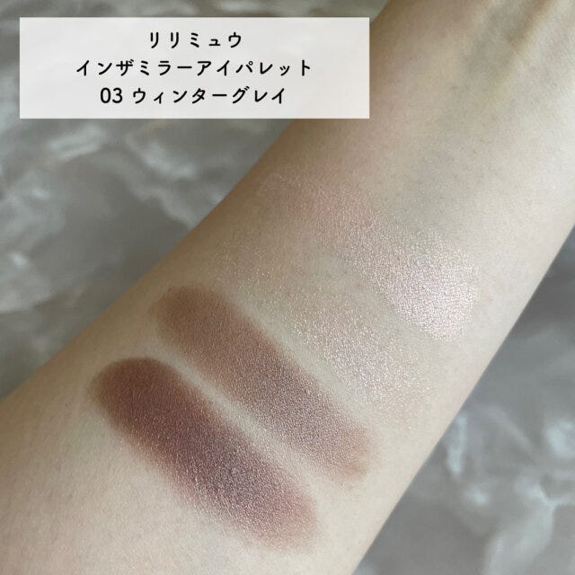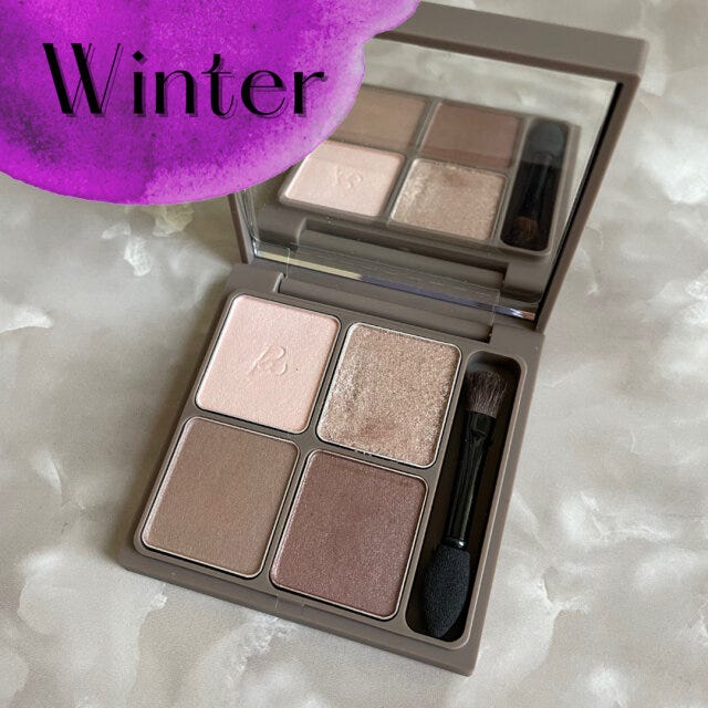 ウィンターさんには、黄味のないグレイッシュなブラウンがお似合いです!リリミュウのインザミラーアイパレット 03 ウィンターグレーは、まさにウィンターさんにぴったりなカラーで目元を引き締めつつ上品な印象にしてくれます!