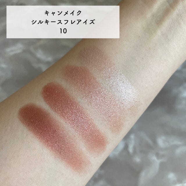 青みの柔らかいカラーが得意なサマーさんには、ピンクブラウンがお似合いです!キャンメイクのシルキースフレアイズ 10は、ピンクだけど腫れぼったくならず程よい甘さを引き出してくれます。