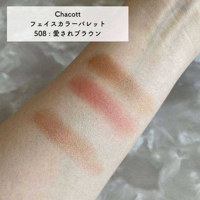 チャコットのフェイスカラーパレット 508 愛されブラウンアイシャドウは、ベーシックで使いやすいゴールドブラウンとコーラルピンクの入ったパレットで、ベーシックだけどトレンド感も◎細かいラメと透け感のある発色なので、重くなりすぎず今っぽい目元が作れちゃいます♡