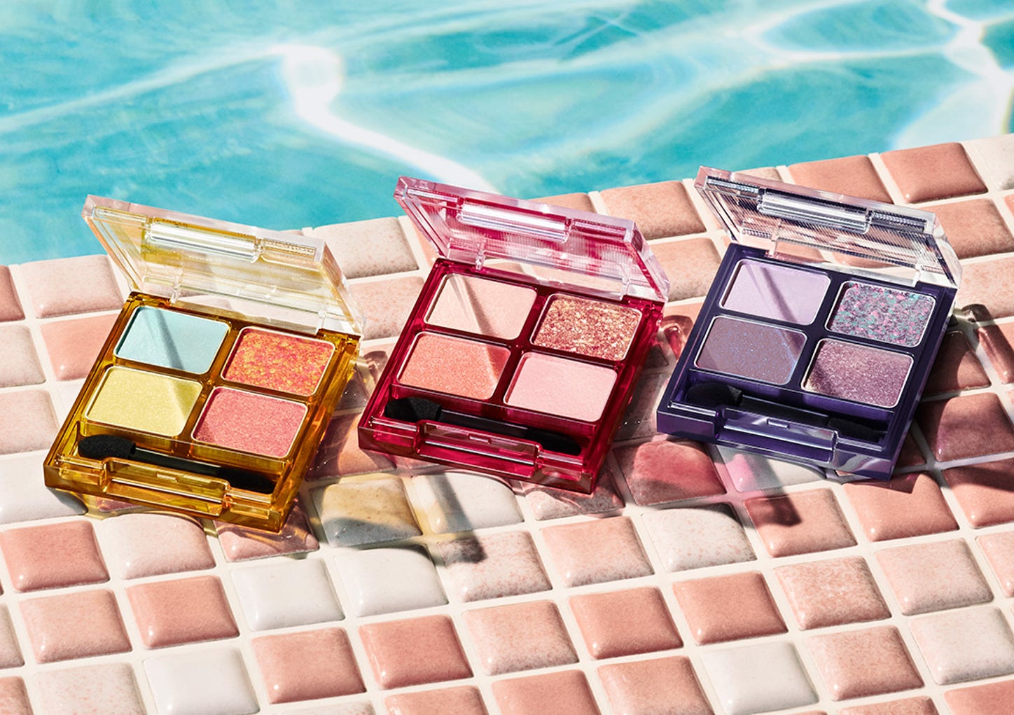 きらめく水面のような輝きで、目もとの存在感を高めるオールきらめきパレット「ケイト ビーチバカンスグリッターパレット」(数量限定)。左上から反時計回りにパール、クリーミータッチ、ハイパーグリッター、ミックスグリッターと異なる輝きを放つグリッターがセットされており、好きな組み合わせでオリジナルのアイメイクを楽しめる。