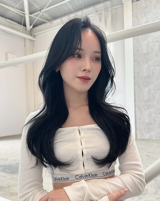 黒髪の韓国風くびれヘアに合わせるかきあげ前髪