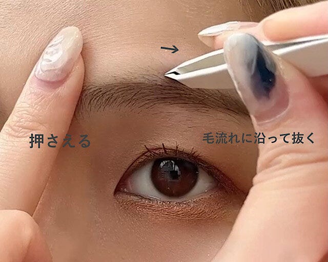お手入れの際に、ハサミは極力使わないようにしましょう。毛量が気になるときは毛抜きで間引くのが正解です。溜まっている濃い部分を1本ずつ抜いていきます。するとカットするよりもナチュラルに薄くできますよ♡