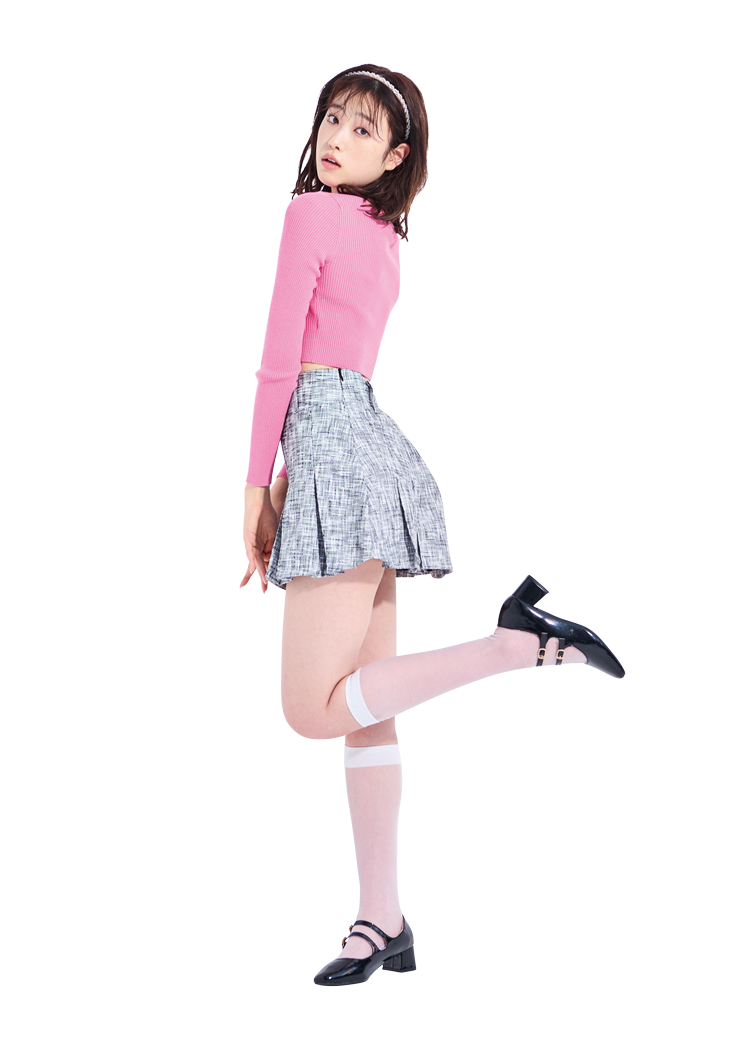 ミニ丈×ミニスカのプリかわコーデが可愛い。グレー×ピンクでKアイドルみたいな雰囲気に♡