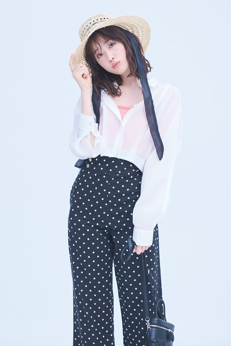 黒ドットを投入すれば一気にガーリーな印象に♡ シアー素材でキメて透明感アップ。