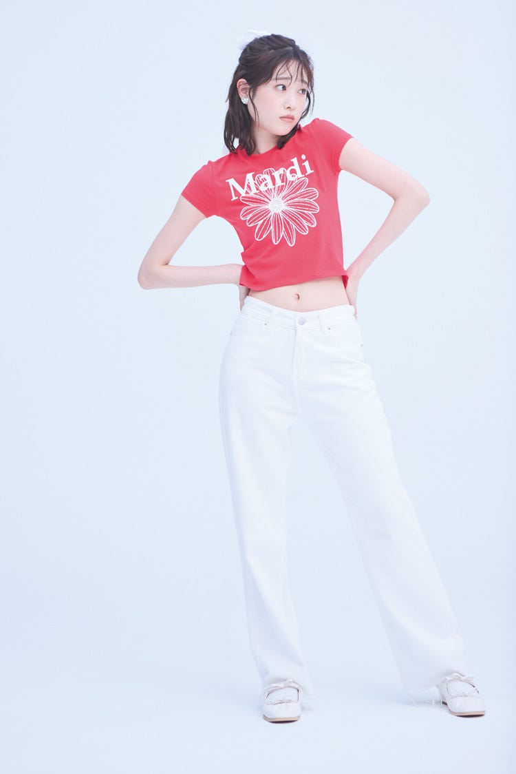 シンプルコーデ×ビビッドカラーが好相性◎。ピタッとショートなちびTでスタイルアップしよう♡