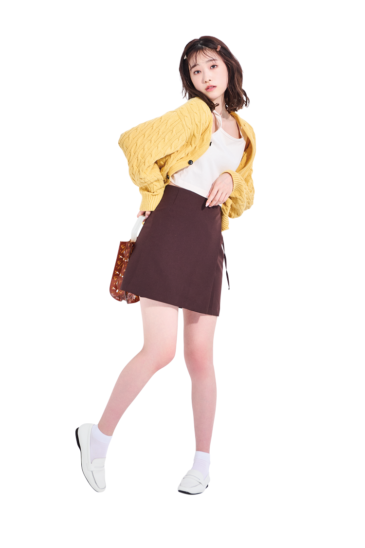 イエローとブラウンの間に白をはさめば濃色が軽やかに。ひまわりカラーで夏ぴったりの着こなしを楽しみましょ♡