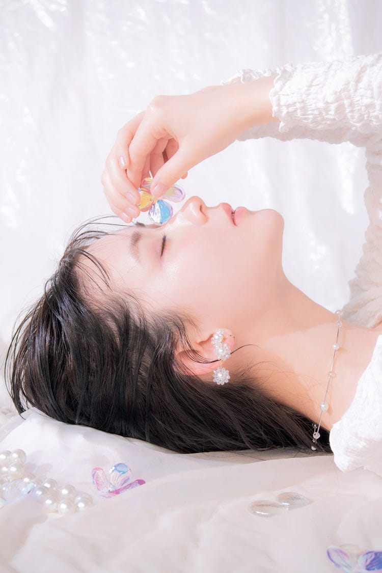 顔まわりをパールで盛って上品で清潔感のある女子を演出♡ はかなさのあるネオホワイトなアイテムでコーデを格上げ。