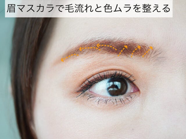 パウダーを塗り終えて色ムラが気になる場合は、アイブロウマスカラを重ねることをおすすめします。パウダーでは難しい眉自体への着色ができるため、色ムラが一気に払拭できます。