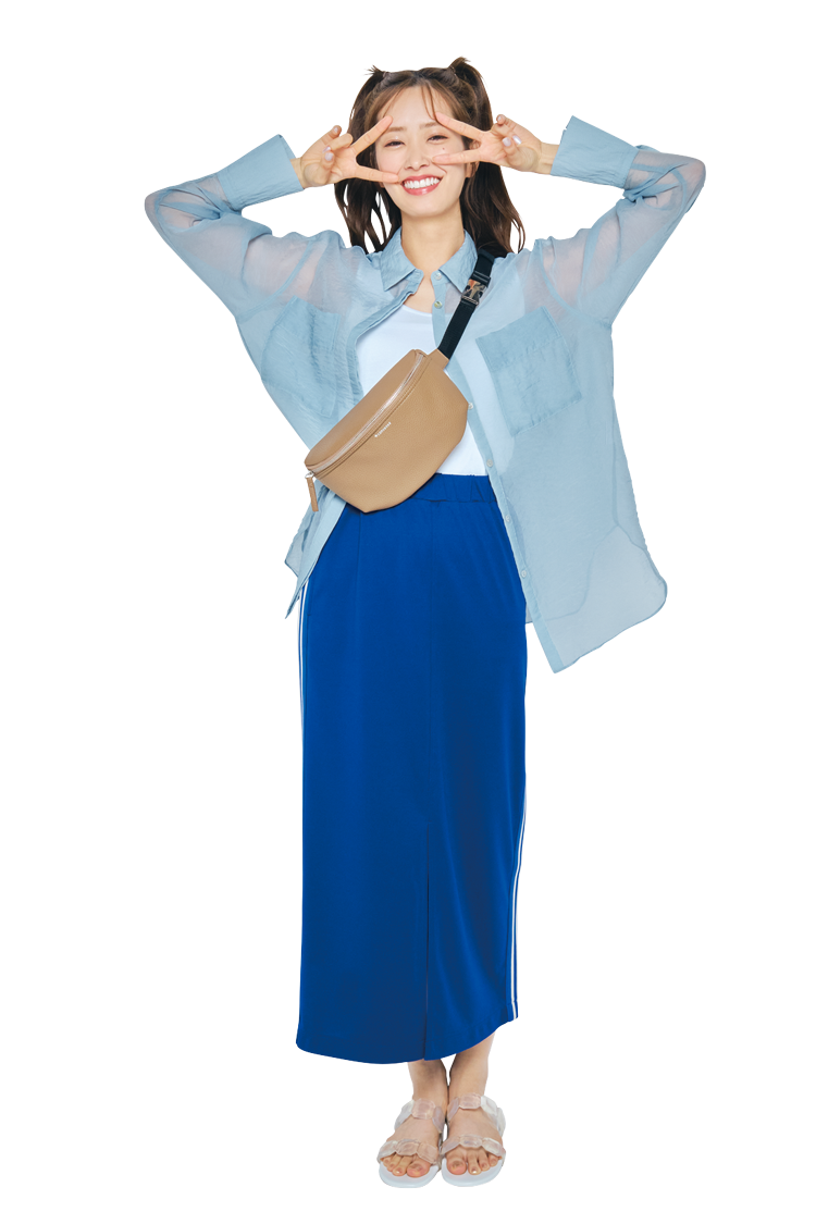 クールな青は濃いめと淡めをかけあわせてマイルド仕様に。濃淡の違うブルーでまとめたコーデは写真映え間違いなし!トレンドのシアーアイテムも取り入れて、しゃれ感も忘れずに。