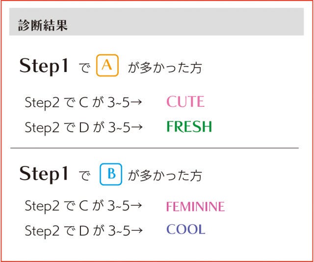顔タイプ診断とは、お顔のパーツの形や配置から似合うファッションなどがわかる診断のこと。顔タイプメイクでは、そのファションに合うメイクを提案しています。