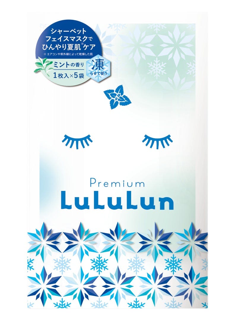 プレミアムルルルン シャーベットマスク(ミントの香り) 内容量 1枚入×5袋 価 格 1,650円(税込) 発売日 2023年6月8日(木) お取り扱い ・ルルルン公式オンラインストア・全国のイオン