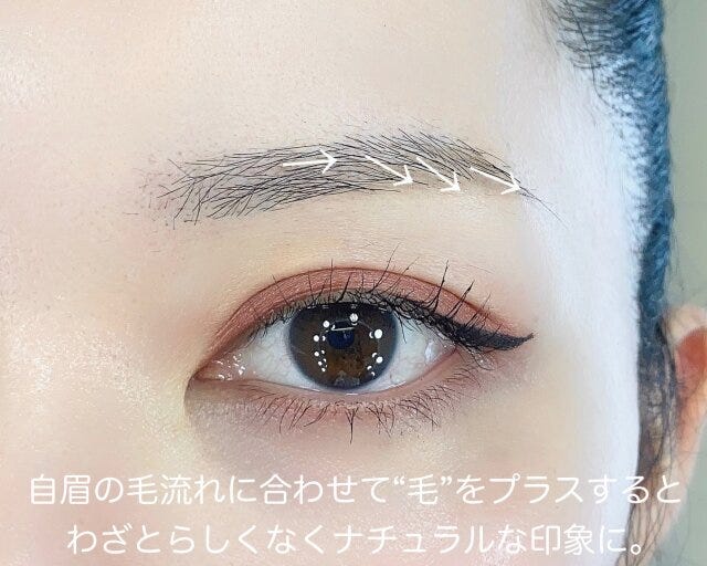 このとき、生えている眉毛の毛流れに合わせて描くとよりリアルでナチュラルな仕上がりに。