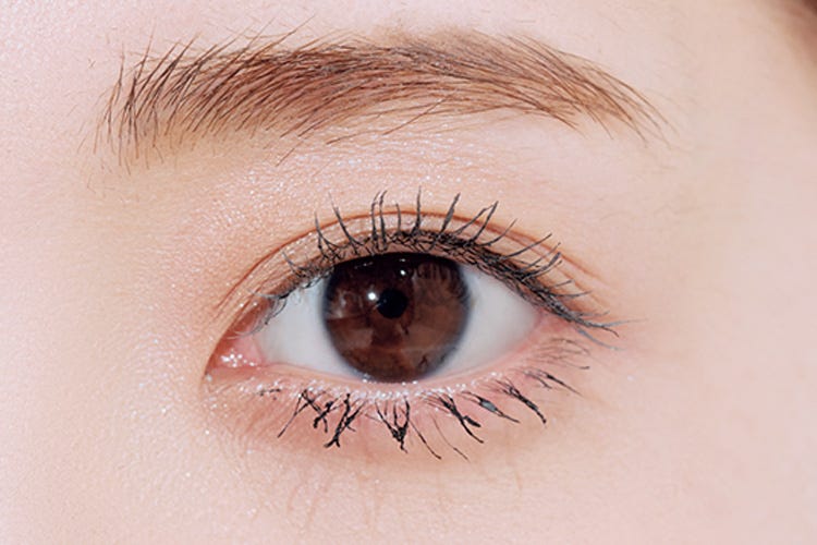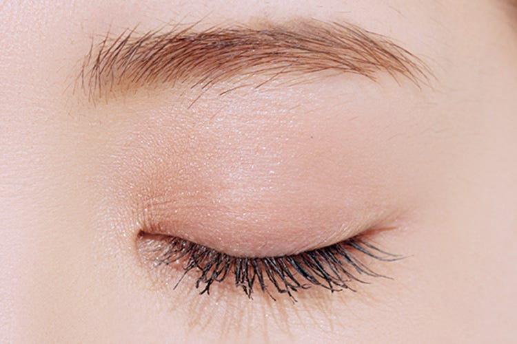 ②マスカラで下まつ毛に束感を作るaのマスカラで、上まつ毛はさらっと一度塗りに、下まつ毛は何度も重ねづけして毛束を作る。