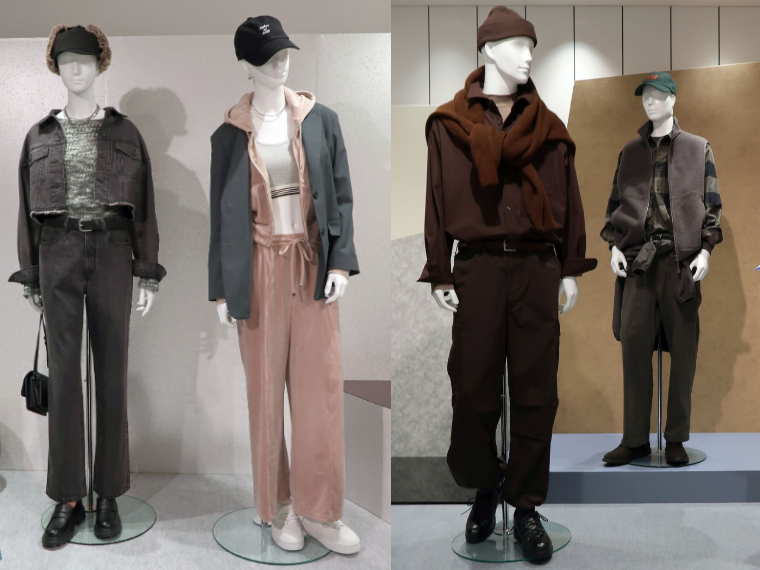 ジーユーの23年秋物は、ウィメンズは「グラマラス」をテーマにストリートやスポーツなどの要素を取り入れ、肌見せアイテムやクロップドトップ、ベロアパンツなどを組み合わせた着こなしを提案する。メンズは、カーゴベイカーなどミリタリー由来のワイドパンツにカーディガンやショート丈のブルゾンを合わせるコーディネートを軸に据える。