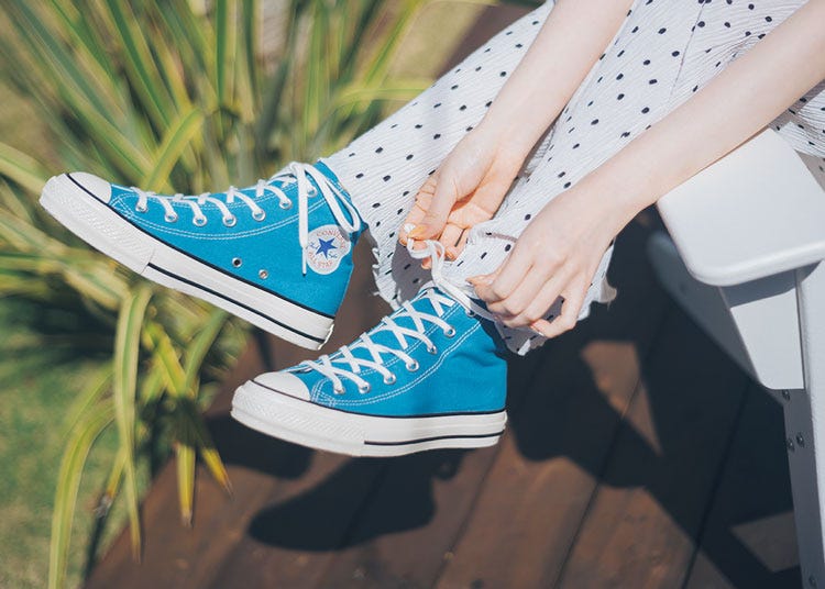 服の色みにあわせるのがコンバース上級テク。レトロなデザインが可愛い♡