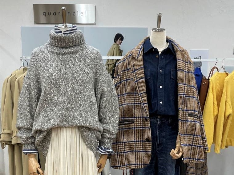 定番アイテムは、汎用性を重視した。トレンチコート(2万900円)は胴回りやアームホールにゆとりを持たせた。ポリエステル100%のため軽量で、しわになりにくい。身長に合わせて着丈が違う3サイズを企画した。ボウタイリボン付きのブラウス(1万450円)やオーバーサイズのニットトップ(1万2980円)、プリーツスカート(1万1990円)など、フェミニンなアイテムもある。価格帯はセレクトショップのシップスとシップスエニィの中間に設定した。既存レーベルとは違う新規客獲得を狙う。