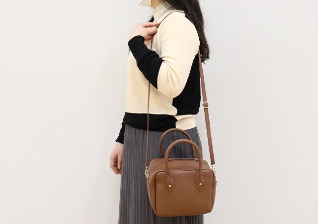 ショルダーベルトは調節が可能なので、少し短めに調節して肩掛けとして使ったり、長めに調節して斜め掛けバッグとして使うこともできますよ!