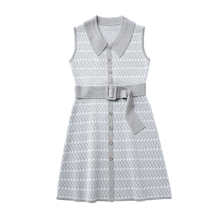 ピタシルエットながら、ウエストベルトつきでスタイルアップに効果的。えりつきでいい子ちゃんルック♡