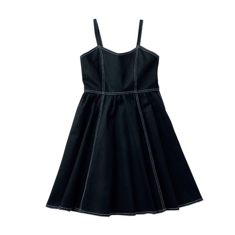 インナーあわせが定番と思いきや、あえて1枚で着るのも今年っぽい!縦に入ったホワイトステッチが体のラインを綺麗に見せてくれる。