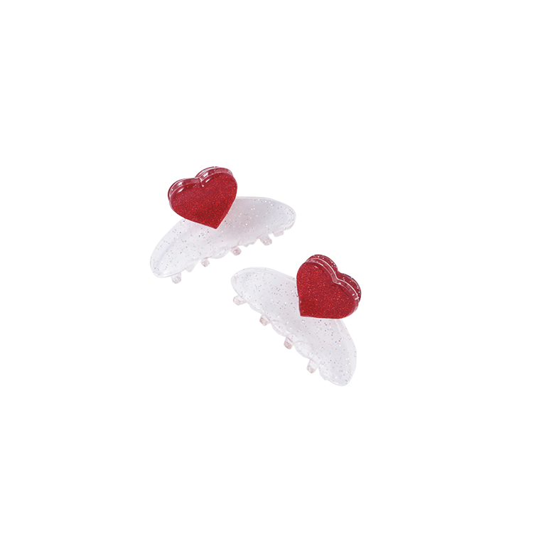 ハートヘアクリップ 各900円/Aura 撮影/藤原宏(Pygmy Company・モデル)、上田祐輝(静物) スタイリング/稲葉有理奈(KIND) ヘア&メイク/Mien(Lila) モデル/金川紗耶(本誌専属) 文/天井玖瑠海