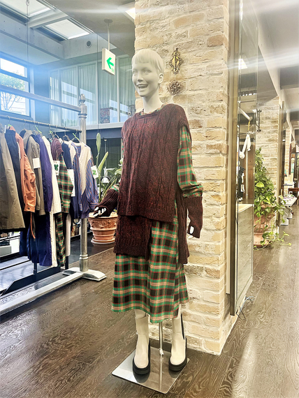 アズノゥアズは、主力ブランドの「アズノゥアズ・ドゥバズ」と大きいサイズの「アズノゥアズ・オオラカ」で23年秋、セットアイテムを強化する。共地もあるが、目立つのはより単品ごとに使いやすいテイストの異なるアイテムとのセットだ。コーディネートで悩まない安心感と着回しやすい実用性で推す。