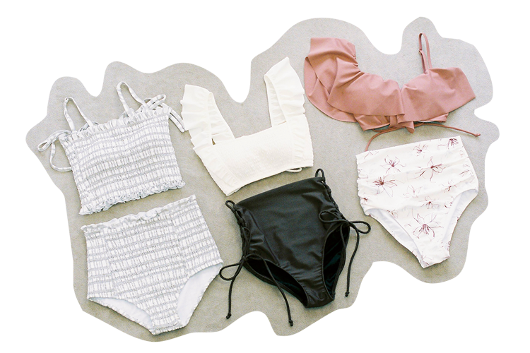 脚長効果抜群なハイウエストが超進化してる様子。ビキニとの境目を限りなく減らしたデザインは肌見せに自信がない……なんてコにもうれしい♡ ビキニデビューにももってこいなNEWフェイス。このトレンドを逃すわけにはいかないねっ!