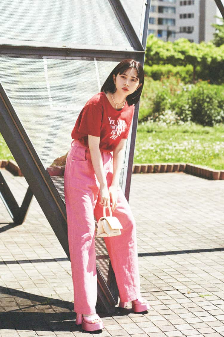 元気も女のコらしさも手に入る欲張りコーデパッと目を引くビビッドな色×色は、夏だからこそ挑戦したい組みあわせ。情熱的な赤とピンクでとことん目立っちゃって♡