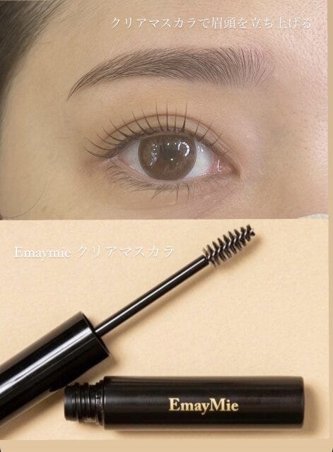 眉頭以外は毛流れにそって塗ればOKです。今回使用したのは、「EmayMie スタイリング クリアベース アイブロウマスカラ」です。