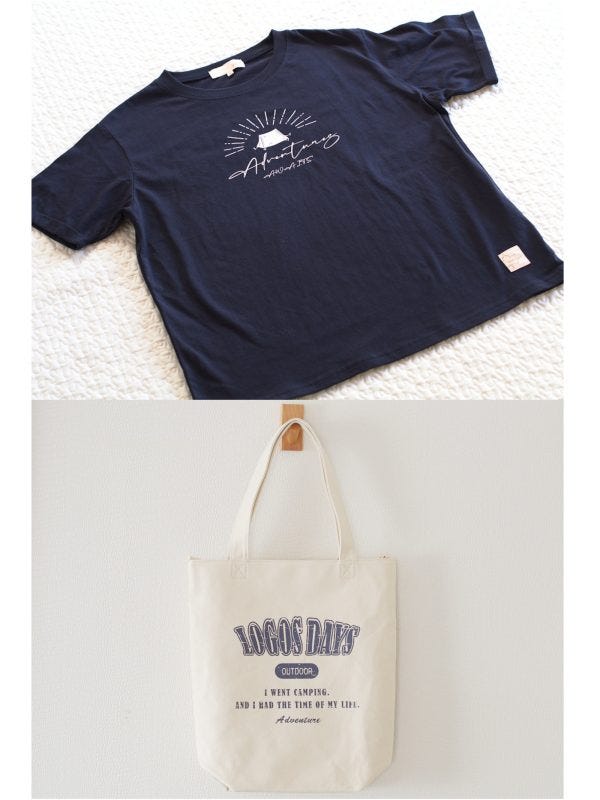 Tシャツとトートバッグは、アウトドアブランド「LOGOS」としまむらの協同開発ブランド「LOGOS DAYS」の商品。