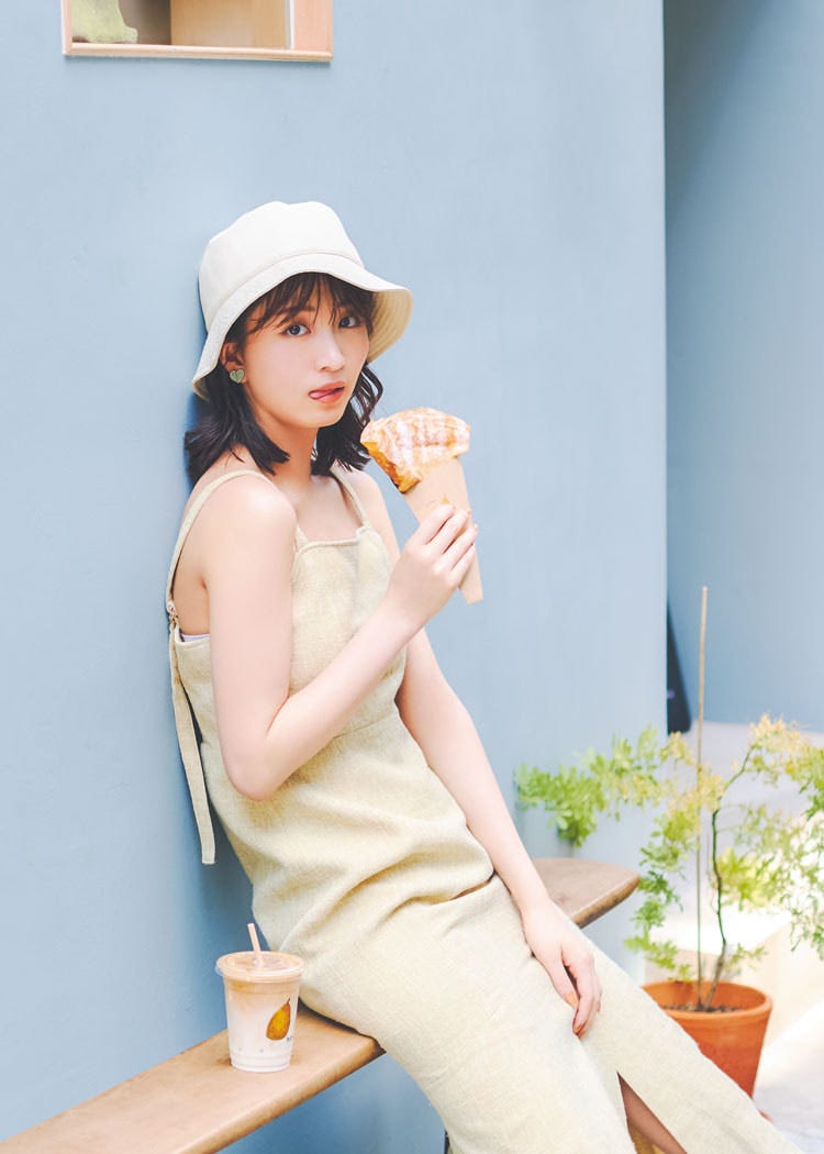 ブルーボウタイブラウス 15,180円/pain(lilLilly TOKYO) グレーリブフリルミニスカート 6,980円/épine イヤリング 7,350円/アビステ 白バッグ 8,910円、イエローサンダル 7,920円/ともにRANDA 撮影/藤原宏(Pygmy Company)、遠藤優貴 スタイリング/稲葉有理奈(KIND) ヘア&メイク/河嶋希(io・鈴木分)、megu(岡崎、村瀬分)、RIKO(KIND・吉田分) モデル/鈴木愛理、岡崎紗絵、吉田朱里、村瀬紗英(以上本誌専属) 文/政年美代子、小田和希子