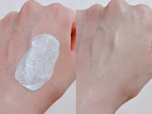 乳液みたいな伸びがいいテクスチャーで、肌にスーッとなじみます。クールな塗り心地が、とても気持ちいいですよ。