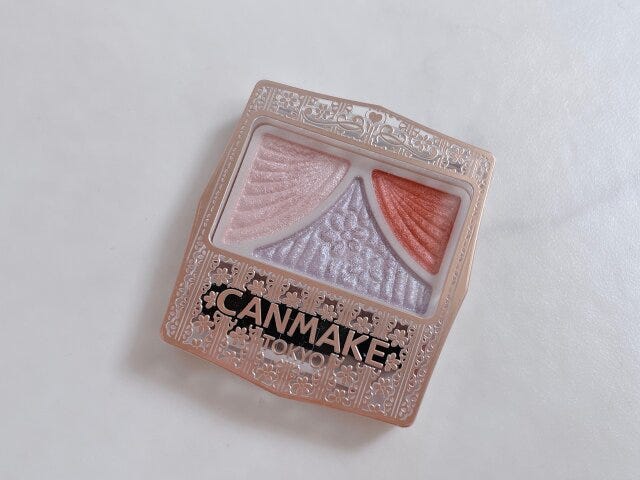 夏らしい色味とラメ感が楽しめるアイシャドウパレット。ブルベさんも使いやすい透け感あるオレンジと、青ラメ、ピンクベージュのラメがかわいいんです!