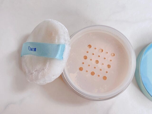 パフでポンポンつけると、肌がひんやりするフェイスパウダー。マットな仕上がりで崩れにくいので、夏メイクにおすすめです!
