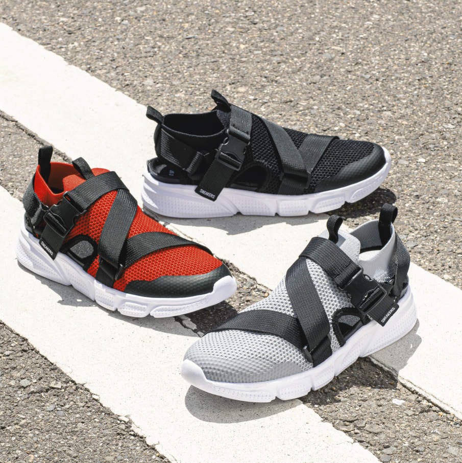 話題のスニーカーサンダルが軽量タイプで登場! サイドやバックが開いたデザインなので、夏でも素足で履けて涼しく過ごせます。キッズからメンズサイズまでそろうので、ファミリーでおそろいにしてもいいですね。