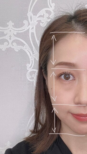 お顔のパーツが3等分になるように眉の位置を決める