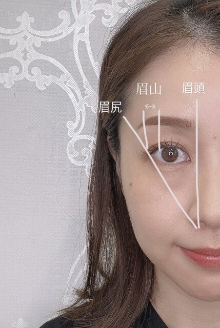 眉頭、眉山、眉尻の位置を決める