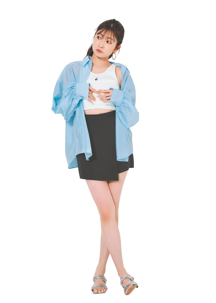 女性らしさとラフさを絶妙なバランスで落とし込んだシアーシャツ。ミニコーデも旬のシャツあわせならしゃれ感たっぷり。