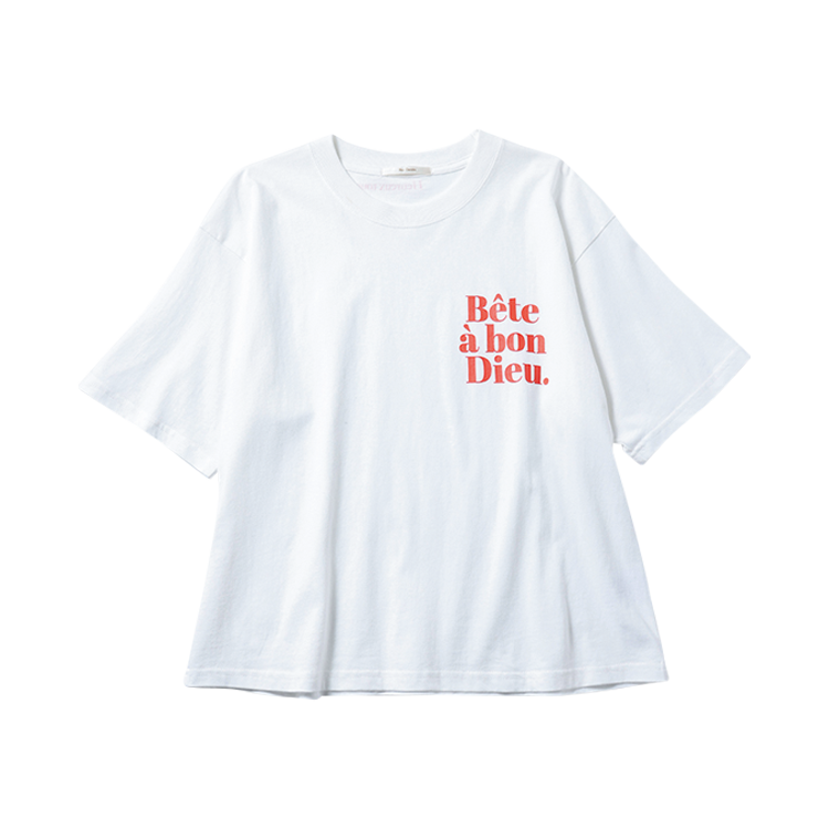 赤ロゴTシャツまた着てる!って思わせない、ワンポイントロゴが正解◎。シンプルで使い勝手バツグン!