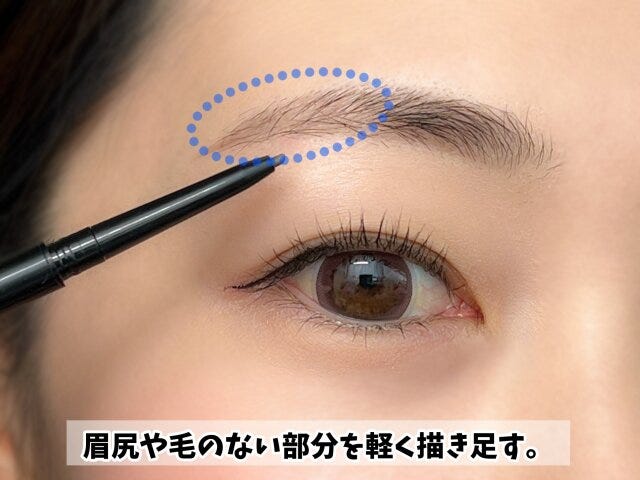 アイブロウペンシルで毛の少ない部分を軽く描き足していきます。