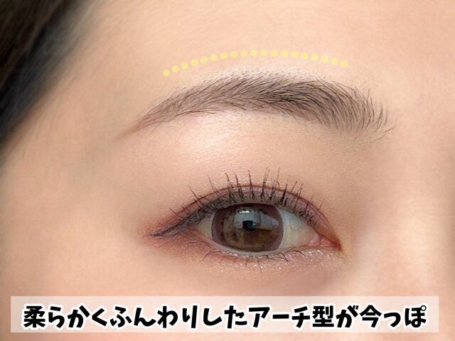 過去の眉は形も色もしっかりしているものが主流でした。しかし最近の眉はふんわりしていてナチュラルな眉が特徴なんです。形はより自然な形に見えるアーチ型で、色は眉よりちょっと明るめで、パッと顔に目が行った時に眉が目立ちにくいのがポイント。